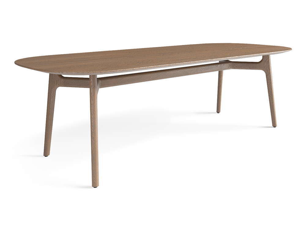 Стол, выполненный в лаконичном дизайне, станет основным элементом мебели в обеденной зоне, а также идеально подойдёт для переговорных комнат в офисных помещениях. Изделие полностью сделано из массива дуба, а матовые древесные отделки раскрывают красоту этого природного материала. Округлые формы стола наполняют пространство истинным уютом, смягчая геометрию стен и другой мебели. Надёжные опоры представляют собой прочную и цельную конструкцию из массива дуба, которая не имеет видимых элементов крепления — ничто не отвлекает от лаконичного дизайна изделия.