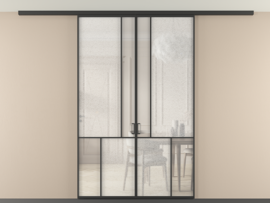 Дополнительно на раздвижную двустворчатую перегородку вдоль стены и четырехстворчатую перегородку внутри проема с двумя неподвижным полотнами можно установить механизм синхронного открывания — при открывании одной створки, вторая открывается автоматически.