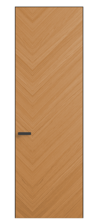 Полотно Rift в скрытом алюминиевом коробе становится полноценным элементом декора. В коллекции представлено 9 моделей дверей в высоте до 3 метров. Рисунок раскладки шпона варьируется от простого до сложного. «Рубашка» для каждого полотна подбирается вручную по цвету, текстуре и фактуре.
