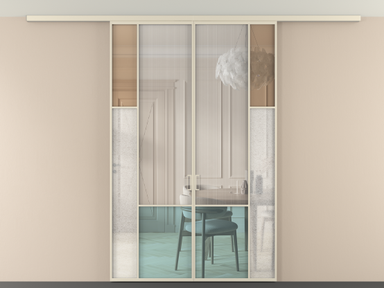 Дополнительно на раздвижную двустворчатую перегородку вдоль стены и четырехстворчатую перегородку внутри проема с двумя неподвижным полотнами можно установить механизм синхронного открывания — при открывании одной створки, вторая открывается автоматически.